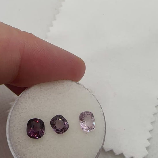 Set of 3 natural spinel in pink and purple hues perfect for rings or a necklace design. 2.01 carats total.